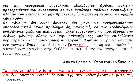 Το παρόν αποτελεί δελτίο τύπου για την προεκλογική κίνηση του υποψηφίου...