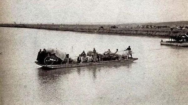 Πρόσφυγες της Ανατολικής Θράκης περνούν τον ποταμό Έβρο με σχεδία. Για την αποκατάσταση των προσφύγων, ο Φίλιππος Μανουηλίδης, πρόσφυγας και ο ίδιος, εργάσθηκε σκληρά |