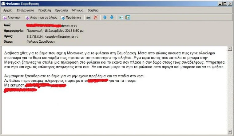 Μετά από αυτό, η Ε.Σ.ΠΕ.Κ.Μ. επικοινώνησε και με τον αποστολέα του μηνύματος αλλά και με μέλη της που υπηρετούν σε διάφορες Μονάδες της Σαμοθράκης. Τα πράγματα λοιπόν είναι τελείως διαφορετικά απ’ ότι παρουσιάστηκαν.