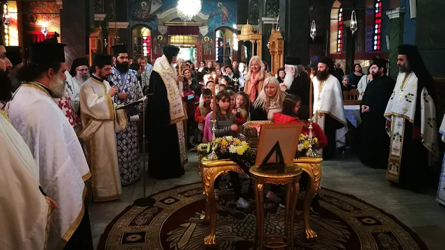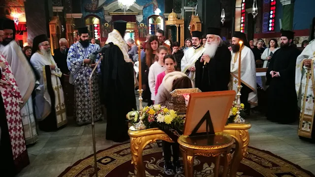 Ο Σεβ. Μητροπολίτης κ. Άνθιμος και οι ιερείς, καθώς πιστοί που βρέθηκαν στο Ναό και οι μαθητές και μαθήτριες του παρακείμενου 3ου Δημοτικού Σχολείου υποδέχθηκαν τα ιερά λείψανα του Αγίου Λουκά και εντός του Μητροπολιτικού Ναού τελέσθηκε Δοξολογία.