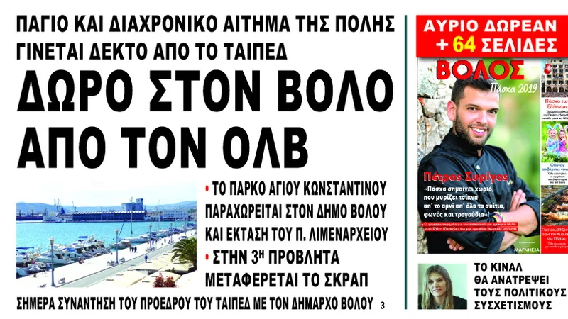 «…Την Παρασκευή 19-4-2019, ο Εκτελεστικός Πρόεδρος του ΤΑΙΠΕΔ κ. Άρης Ξενόφος είχε συνάντηση μεταξύ άλλων, με τον Δήμαρχο Βόλου, κ. Αχιλλέα Μπέο, τον οποίο ενημέρωσε για το σχεδιασμό του Ταμείου σχετικά με τις υπο-παραχωρήσεις των περιφερειακών λιμένων. Αξίζει να σημειωθεί ότι το ΤΑΙΠΕΔ έχει εγκρίνει τον επανακαθορισμό των ορίων της Χερσαίας Ζώνης Λιμένος Βόλου και έχουν εξαιρεθεί εκτάσεις, όπως το Πάρκο του Αγίου Κωνσταντίνου, της Συνοικίας του Παλαιού Λιμεναρχείου, της περιοχής του Πανεπιστημίου Θεσσαλίας και της περιοχής Αμαλιάπολης, οι οποίες δεν σχετίζονται με τη λιμενική δραστηριότητα ώστε να περιέλθουν στο Δήμο…» (magnesianews.gr)
