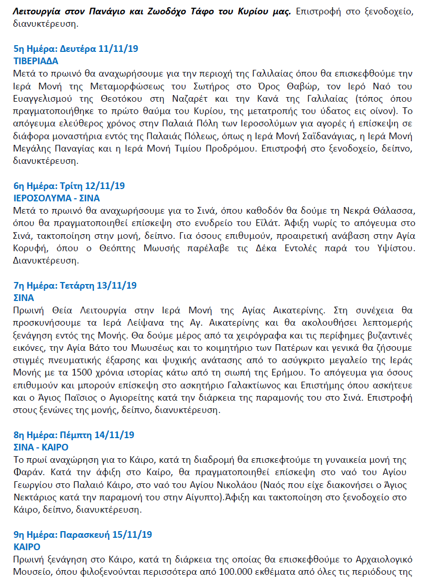 11ήμερη προσκυνηματική εκδρομή της Ιεράς Μητροπόλεως Αλεξανδρουπόλεως στους Αγίους Τόπους, Σινά, Κάιρο και Αλεξάνδρεια 7-17 Νοεμβρίου.