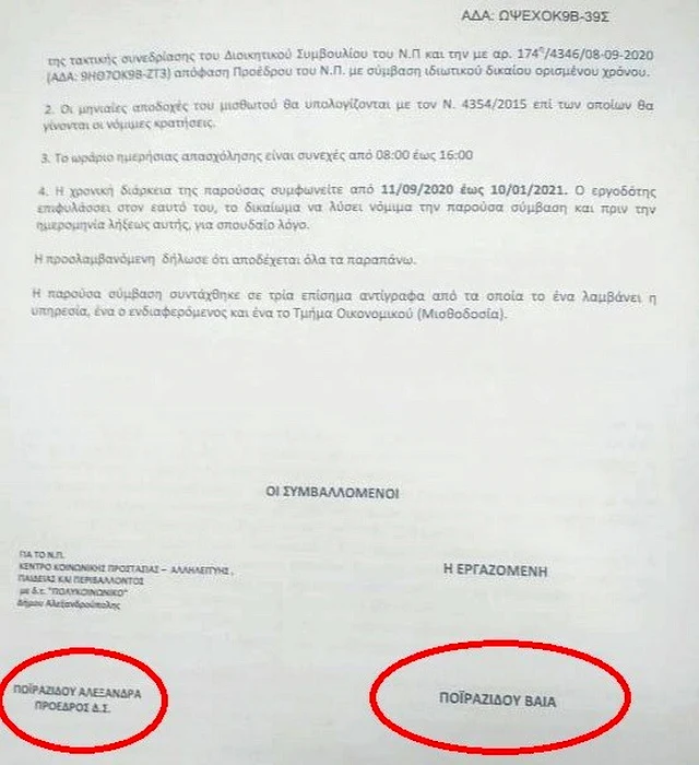 Διόρισε με σύμβαση ορισμένου χρόνου στο Πολυκοινωνικό την αδελφή της και στο Δήμο την κόρη της.