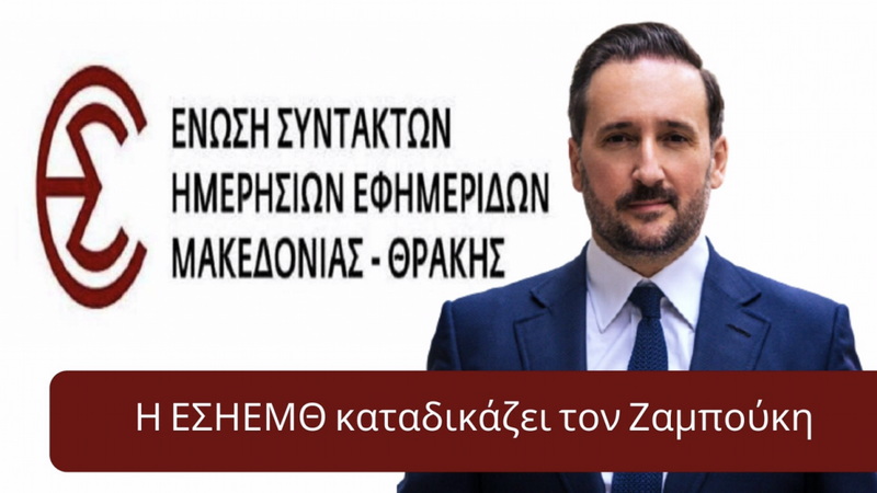 Την έντονη αντίδραση της Ένωσης Συντακτών Μακεδονίας - Θράκης (ΕΣΗΕΜ-Θ) προκάλεσαν οι αποφάσεις του Δημάρχου Αλεξανδρούπολης Γιάννη Ζαμπούκη να καταθέτει αγωγές κατά δημοσιογράφων και ιδιοκτητών ενημερωτικών ιστοσελίδων, και συγκεκριμένα κατά των ιστοσελίδων Alexandroupoli Online, e-evros.gr και Evros Online, αξιώνοντας συνολικά χρηματική αποζημίωση 200.500 ευρώ για «ηθική βλάβη», ενώ ζητά να διαταχθεί και η προσωποκράτηση των εναγομένων για ένα χρόνο! (περισσότερα ΕΔΩ).