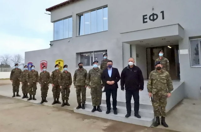 • Στο στρατιωτικό φυλάκιο 1 στις Καστανιές, όπου τον υποδέχθηκαν ο Στρατηγός Διοικητής της 16ης Μηχανοκίνητης Μεραρχίας Πεζικού Αναστάσιος Αλεξιάδης και ο Ταξίαρχος Αναστάσιος Κολέζας.